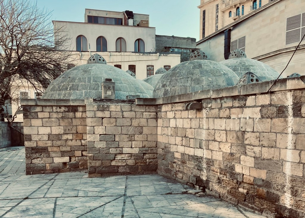 I could cross the street by my apartment and ride a scooter through the beautiful seaside park. This little mini-outing was a simple pleasure on many occasions. I would tell myself I was going to go for a walk and then I would wizz around the cobblestones for 15-20 minutes. I thought I was going to skip the famous bath houses of Baku as I was running out of time. But, for Andrew’s last day in Azerbaijan we went to a Hammam that has been in operation for over 300 years in the old, walled city. There is another old hammam that is now a hammam museum.