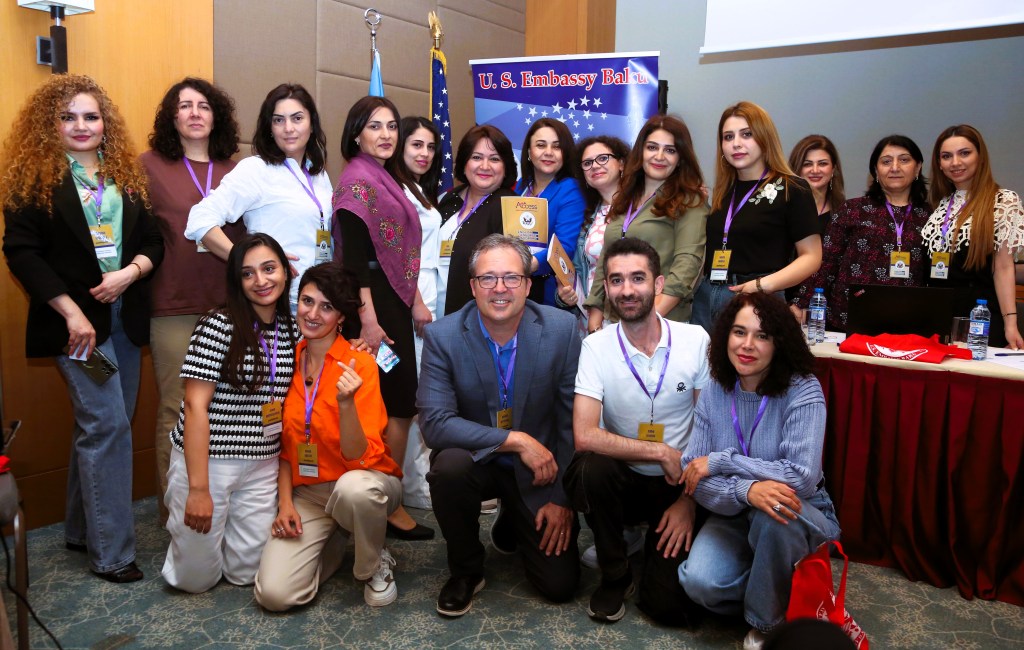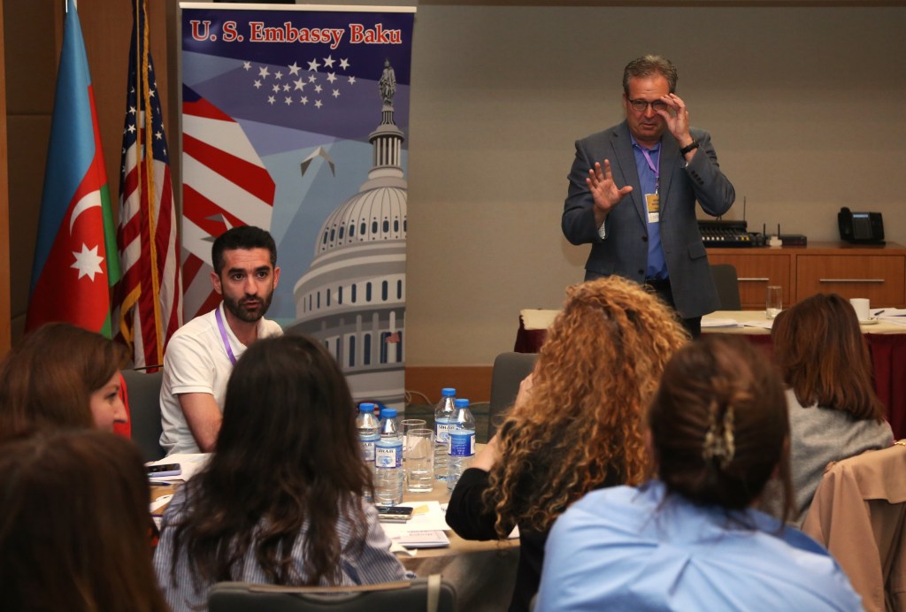 Above, I participated in an excellent panel discussion and got to hear from Azerbaijani experts about their work to support entrepreneurial women. Below, I co-facilitated a two-day leadership conference for Azerbaijani English teacher organizations. It was a pleasure to work with the teachers and two former US Peace Corps training staff.