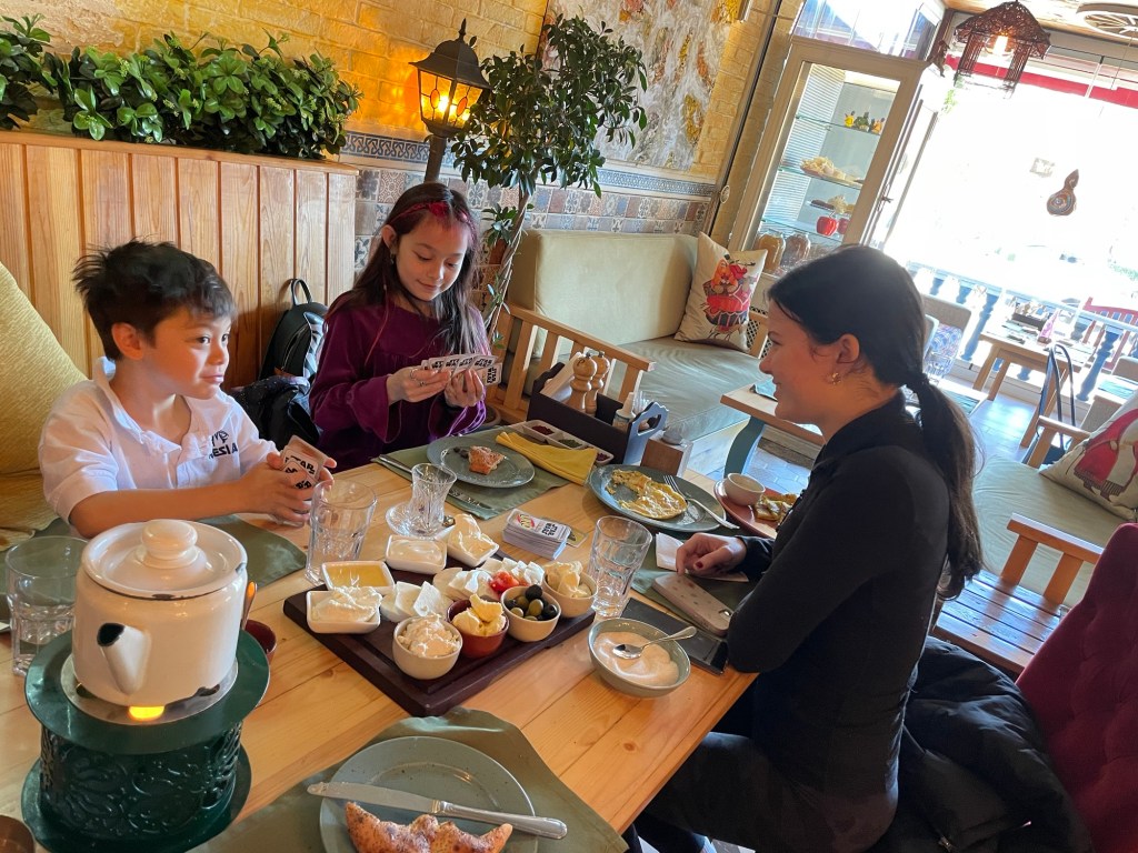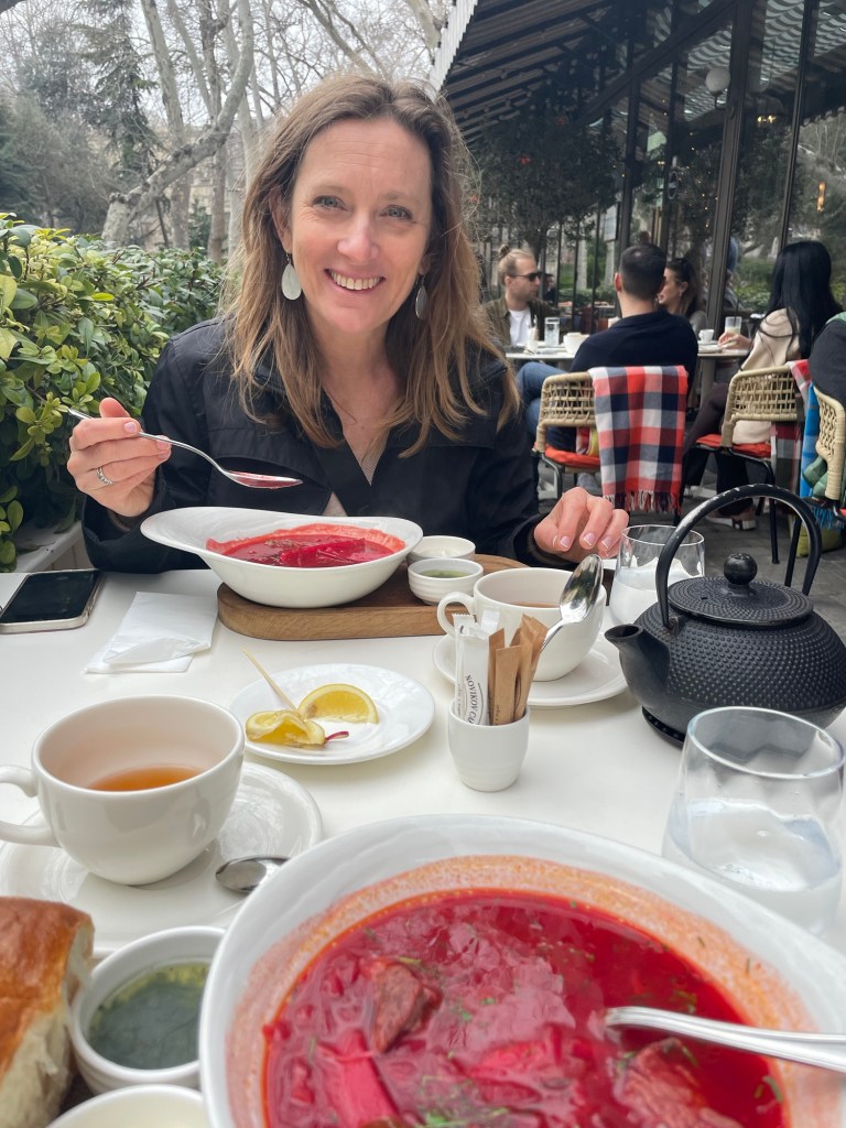 There are Persian, Turkish, and Russian influences on the food, which was really nice. Below, Michelle and I are having delicious borscht.