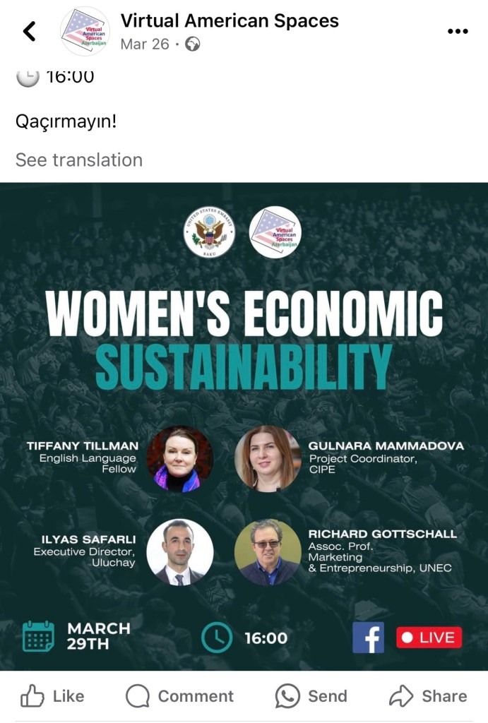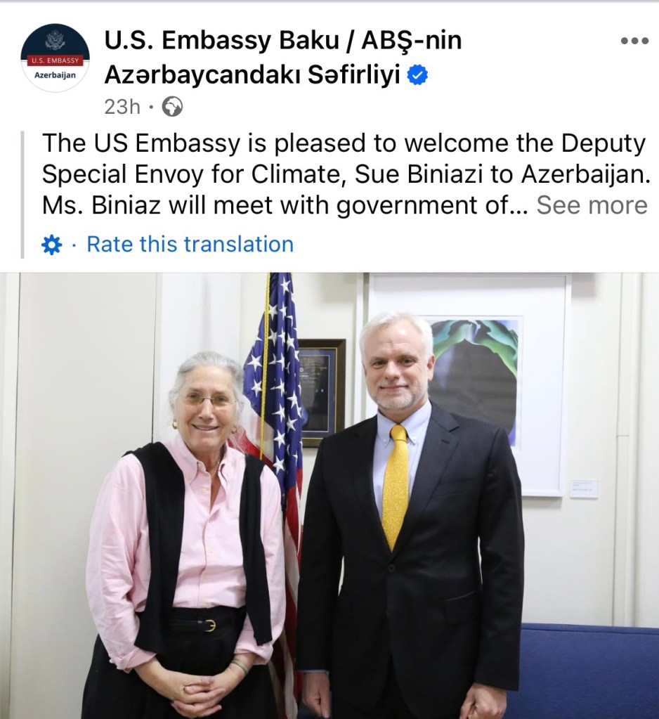 Lucky to have Dr. Curt Gervich, my friend and colleague, visit me in Baku and at UNEC. Curt met with UNEC Dean and friend, Dr. Nazim Hajiyev, sat in on my class, and went out for dinner with other faculty members. Both Curt and I are very interested in the UN Climate Change conference (COPP29) that will be held in Baku this November. It is interesting to see how the US is working to support Azerbaijan in this important work. Earlier this year, I had a great time at the presentation of Sue Biniazi, who explained the history and the goals of the COPP meetings. The US ambassador to Azerbaijan, Mark Libbey, is shown here with Ms. Biniazi.