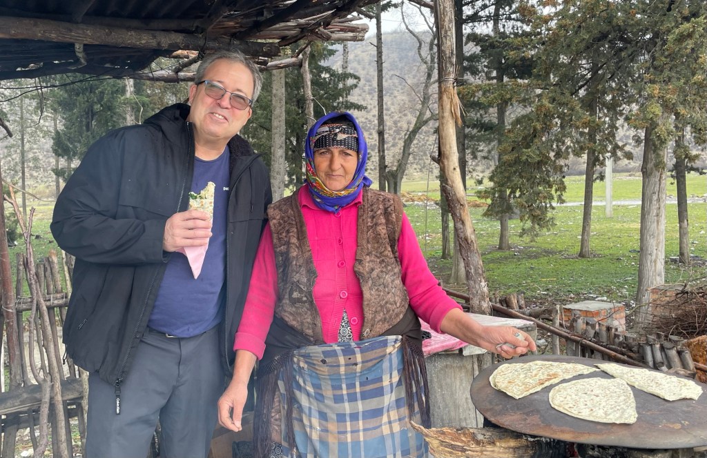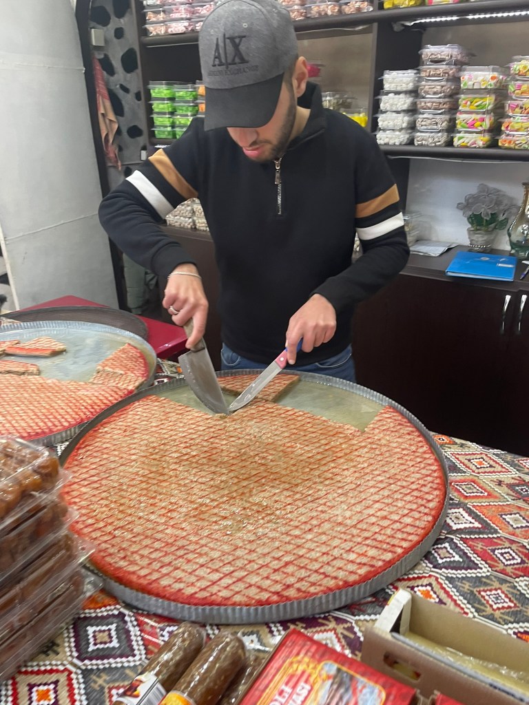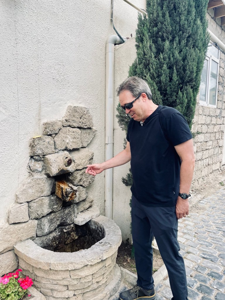 Stopped along the way for some fast food. Gutab is a a staple in Azerbaijan, it is thinner than a typical tortilla and is filled with meat, cheese, or a mixture of fresh green herbs. I aksed to take this picture and a friends of hers from across the road yelled “I’m telling your husband.” Which thanks to Nurlan’s translating, gave us all a laugh. We made it to our very cool accommodations on day 2.