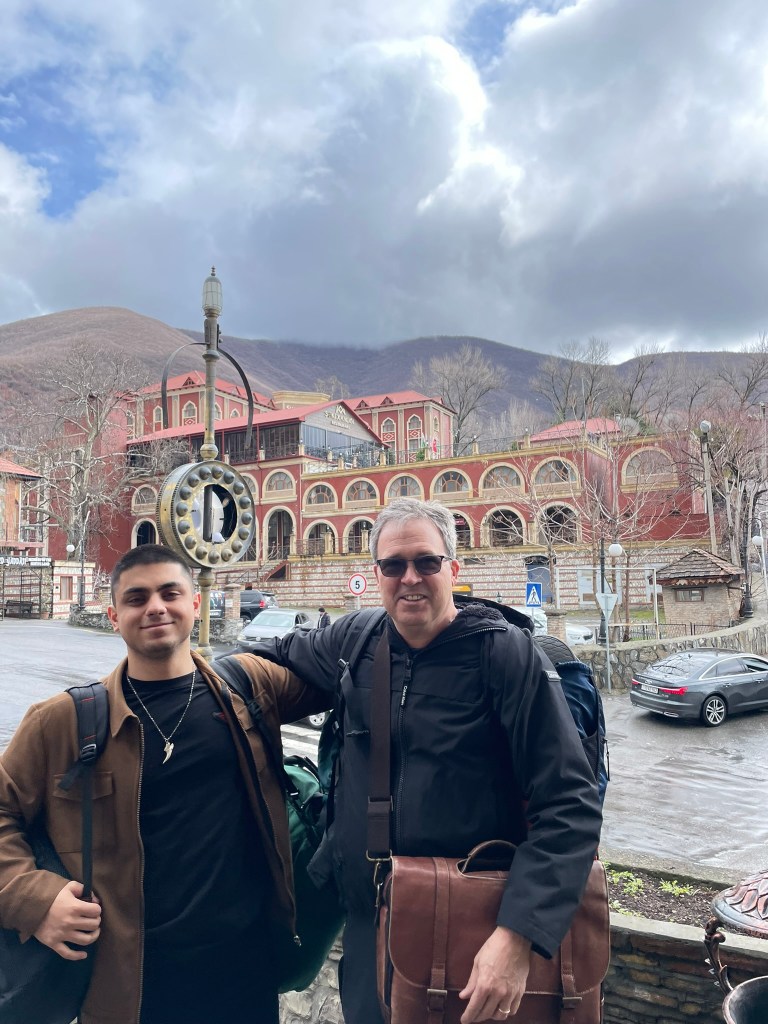 Nurlan is a 19 year old Marketing student at the university where I teach. We met at a local restaurant and struck up a conversation. Nurlan is surprisingly knowledgeable about history and speaks great English from living in Toronto, Canada. This is the view from the Caravansarai’s front door. Below, we are at the Sheki Khan’s Palace.