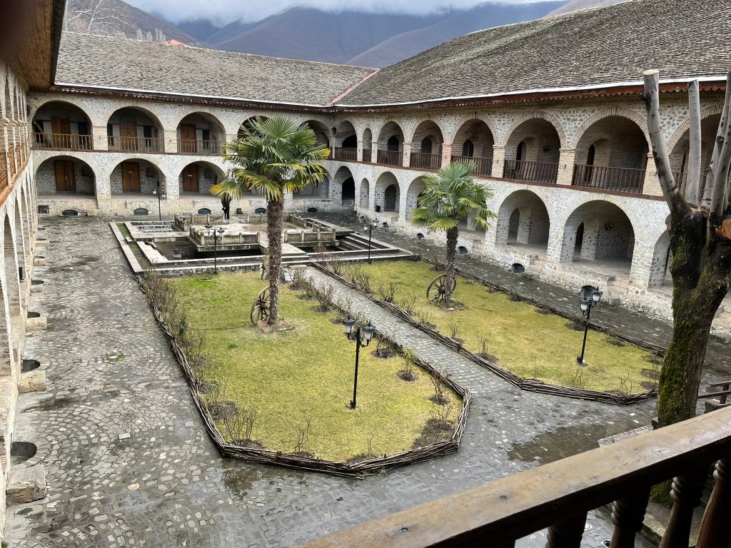 Our suite had 3 rooms and felt a little historic. We arrived in this beautiful area in mud season. The snow was gone and yet to be replaced by leaves or flowers. I would really like to see Sheki in a better season.