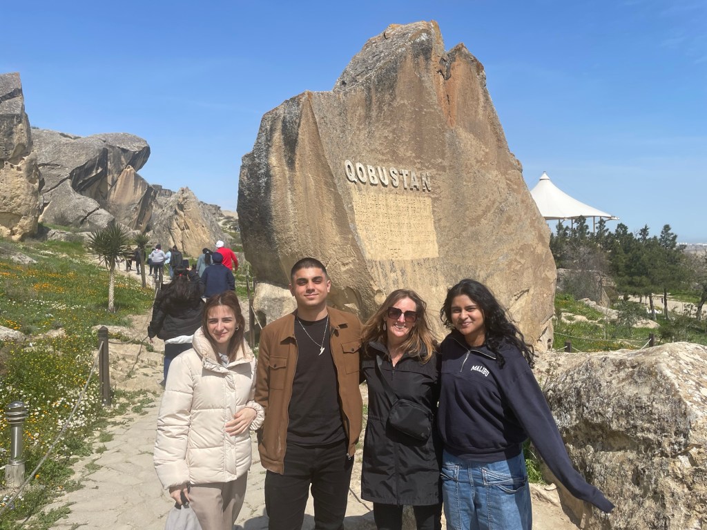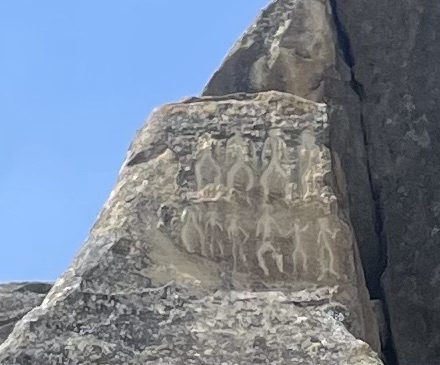 We have organized a few trips out of the city of Baku. Azerbaijan has a varied geography with Caspian sea coast, dessert plains, and the Caucasus mountain range. We visited Gobustan when Michelle was here with Nurlan our Azerbaijani friend and Sohini our Fulbright ETA freind who we travelled with in Sheki. Gobustan is about an hour’s drive from Baku.