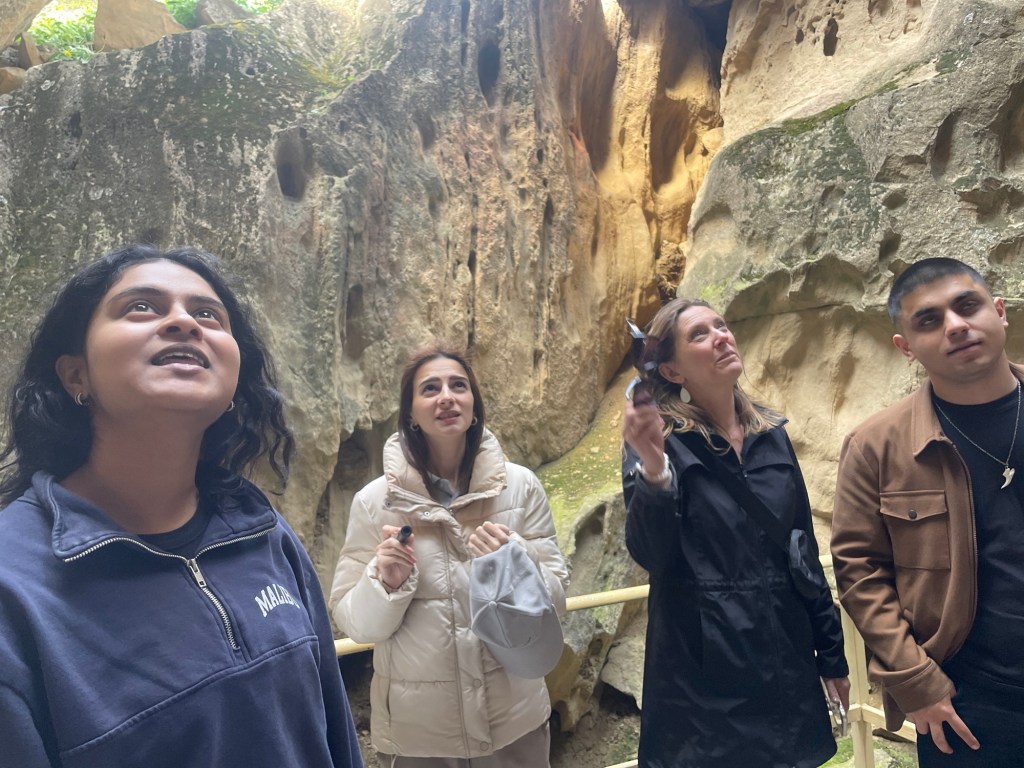 Azerbaijan has a really long history with so many different influences. The site at Gobustan has artifacts and petroglyphs that are 20,000 years old. The evidence suggests that Azerbaijan was among the earliest places humans lived. The museum was modern and our guide was great (pictured on the left). It was a nice day-trip.