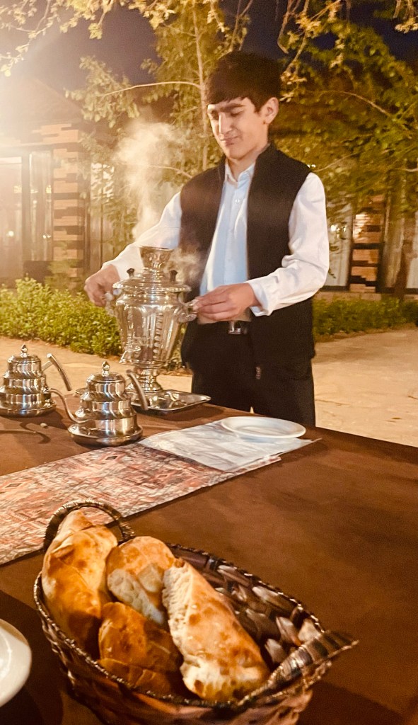 We had a huge dinner at Nurlan’s house with his sister and mother. We had vegetables stuffed with meat, and the rice dish Plov, and a variety of salads. It is common to serve fresh herbs that you eat simple and raw. I have always appreciated tea, but learned a greater appreciation for it in Azerbaijan where it is a huge part of the culture.