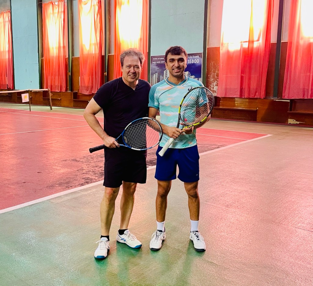 We had a few good times doing some interesting activities in Azerbaijan. Above is our friend Nick who organized some lessons on a windsurfer for me and Curt Gervich. A great way to spend some time in the Caspian. I was not talented enough to take a selfie as I gracefully skimmed the shimmering ripples. Below, I finally got in some tennis in my last couple months in Baku. They have a very friendly tennis community and I should have started playing sooner because tennis is really a great way to meet nice people.