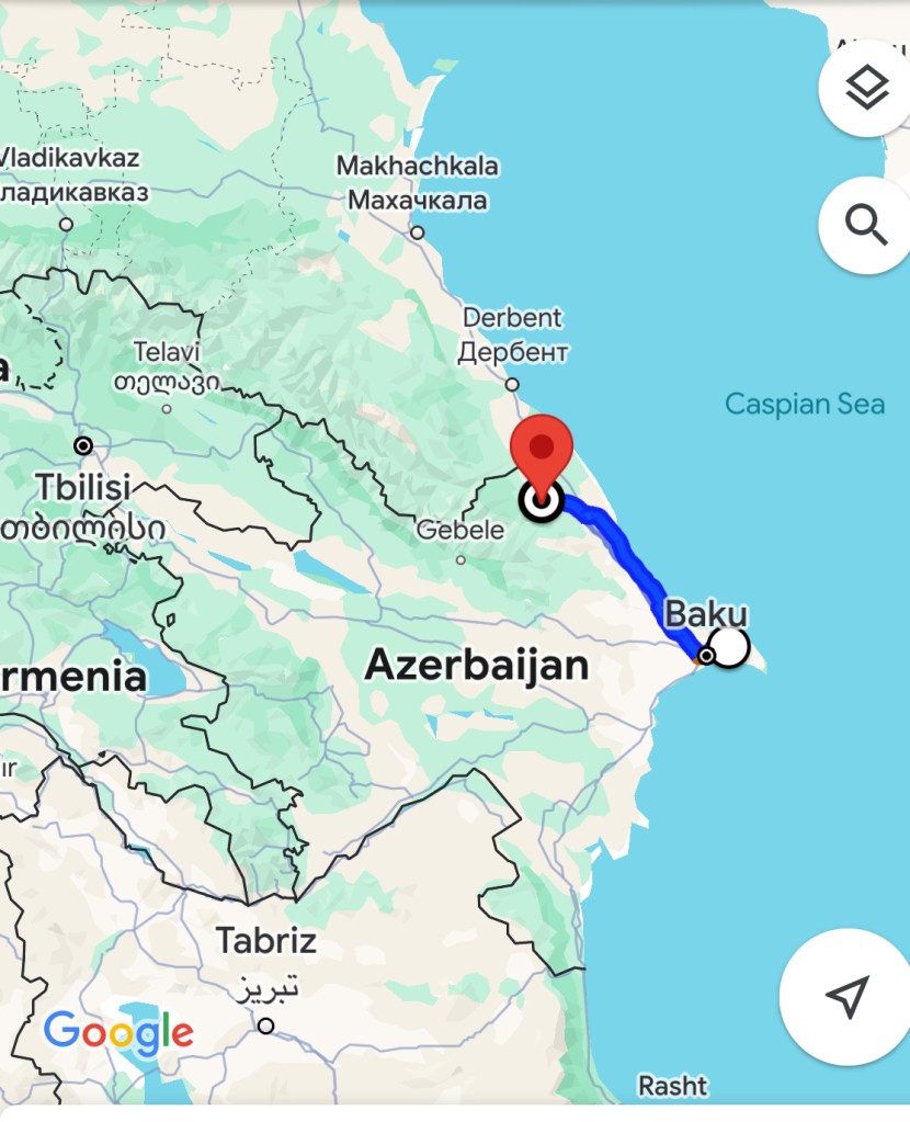 We travelled to Ganja, Azerbaijan’s second largest city and were hosted by Andrew , a Fulbright English Teaching Assistant. Andrew’s parents were born in Azerbaijan and left as refugees after the breakup of the Soviet Union and the following unrest. Andrew speaks Russian and planned a really great two day visit. I include a lot of maps, because it helps me appreciate Azerbaijan more when I see its proximity to Russia, Iran, Armenia, and Georgia.